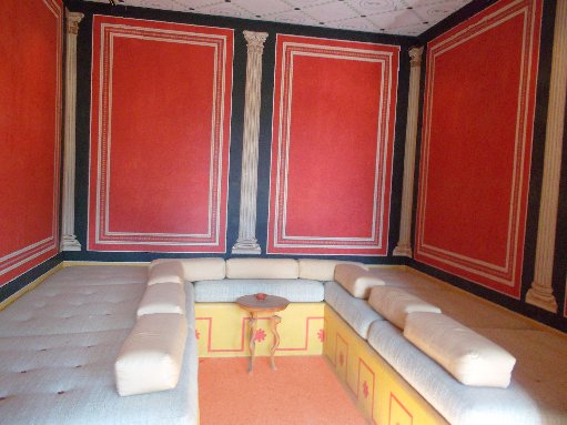 Innen jedoch zeigen sie dann ihre ganze Pracht: Fußbodenmosaike und plätschernde Springbrunnen sind ebenso selbstverständlich wie ausladende Gärten und ein unverbaubarer Blick auf den Ephèbe-See und das an diesen anschliessende Gebirgsmassiv der Alpes Vitellicae, ein Gebirge, an dessen Ausläufern die Kleinstadt Reate liegt, mit 10.000 Einwohnern und einer weit mehr als 2000 Jahre alten Geschichte ein Ziel für einen Tagesausflug.
