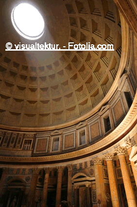 Der Hauptlichteinfall erfolgt über das "Oculus", der kreisrunden Öffnung in der Kuppel, die zumeist, besonders im Frühjahr (September, Oktober und November) und im Herbst (Februar, März und April) für ein warmes, honigfarbenes Licht sorgt.