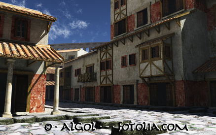 Wie in allen anderen Städten des Großreiches sind die unteren Teile der Hausfassaden in ladinisch-rot gestrichen.